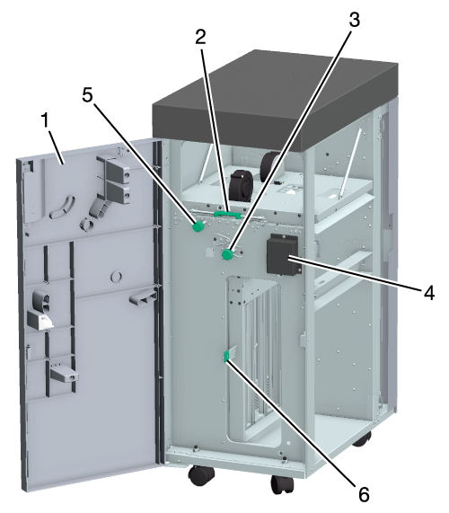1 | Relay unit front door | When clearing a paper jam, open the door and remove the paper. |