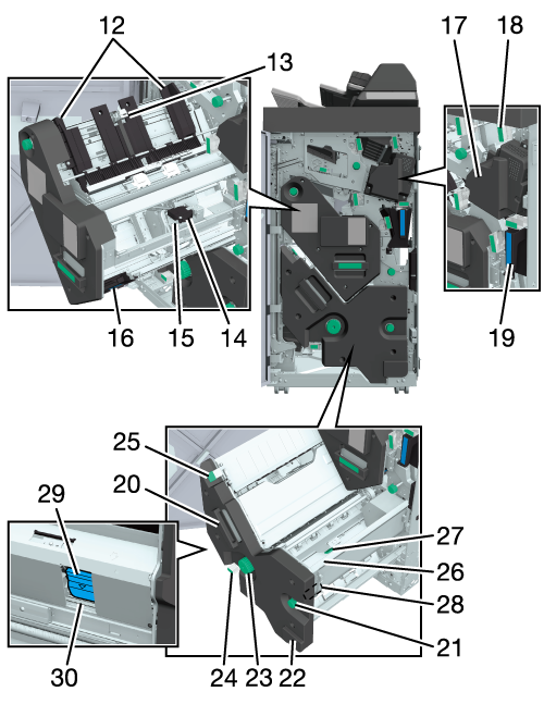 29 | Stapler | When replenishing a staple cartridge, remove Staple cartridge from Saddle unit and replace it. |