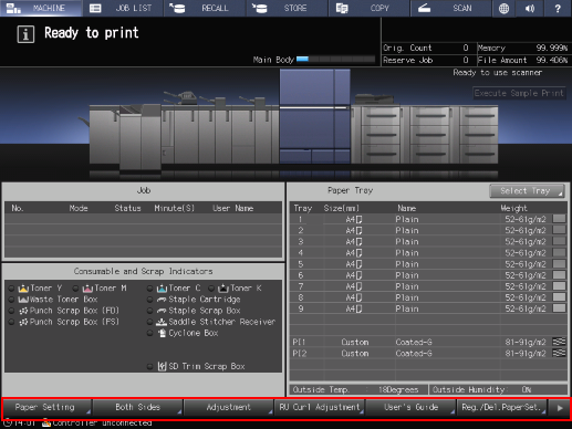 Press [RU Curl Adjustment] of a machine status function key at the bottom of the Touch panel; the [RU Curl Adjustment] screen is displayed.