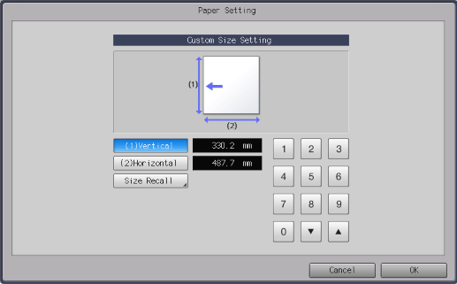 Use the on-screen keypad to enter the paper size.