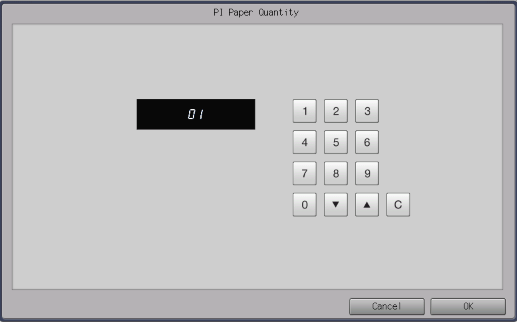 [Quantity] | Sets the number of sheets to load into the Post inserter tray. This setting is available when [ON] is selected in [<PI Paper>]. | |||
