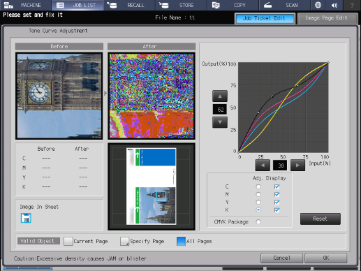 Touch panel - [MACHINE] - [JOB LIST] - [Hold Job] - [Job Ticket] - [Job Ticket Edit] - [Tone Curve Adj.]