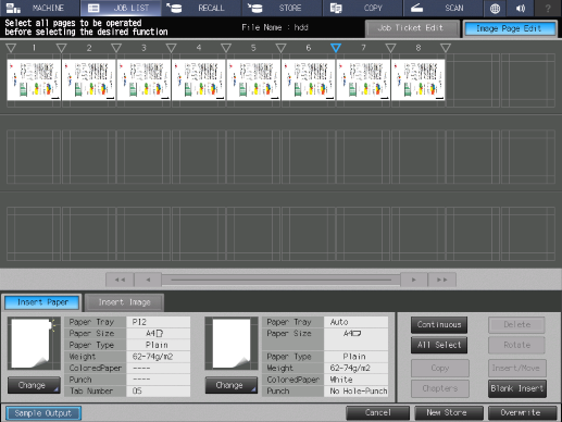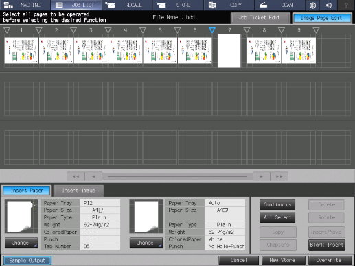 Touch panel - [MACHINE] - [JOB LIST] - [Hold Job] - [Page Edit] - [Image Page Edit] | |||