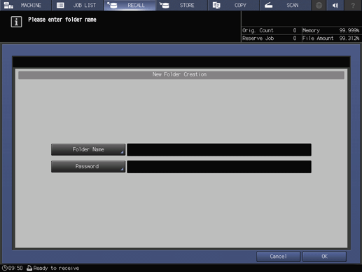 Setting items | [Folder Name] | Enter [Folder Name]. This item can be specified using up to 64 single-byte characters (32 double-byte characters). For details about how to enter [Folder Name], refer to [Folder Name]. | |