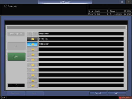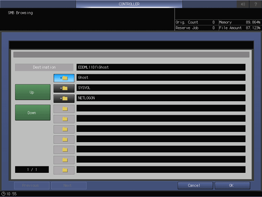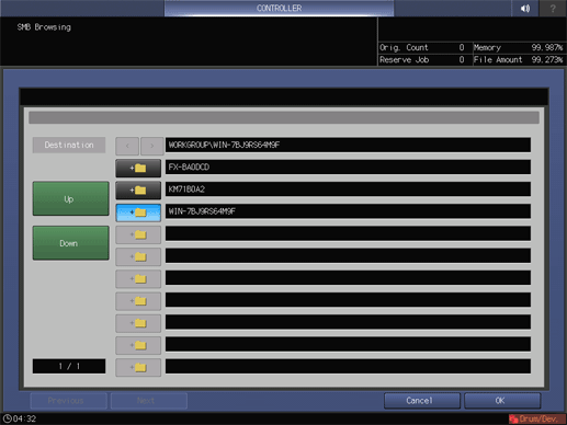 Touch panel - [MACHINE] - [Controller] - [File Transmission Setting] - [File Destination Selection] - [Browsing] | |||