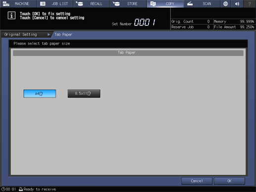 Touch panel - [COPY] - [Original Setting] - [Tab Paper]