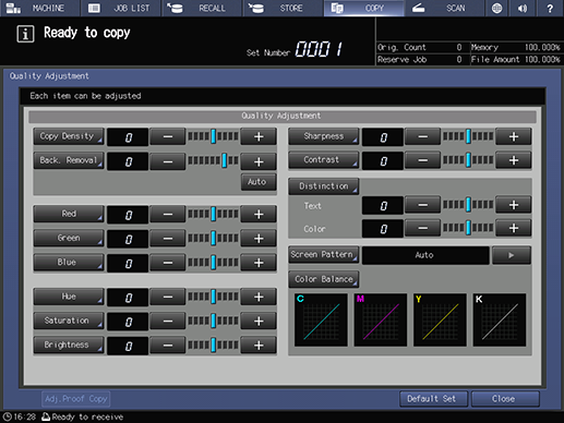 [Adj.Proof Copy] | Makes a copy, and verifies the adjustment result of [Quality Adj.]. |