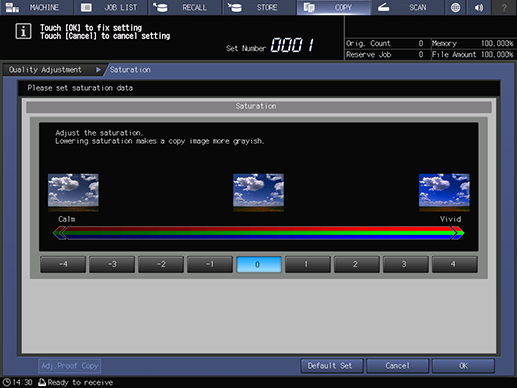 Touch panel - [COPY] - [Quality Adj.] - [Saturation]