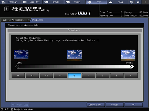 Touch panel - [COPY] - [Quality Adj.] - [Brightness]
