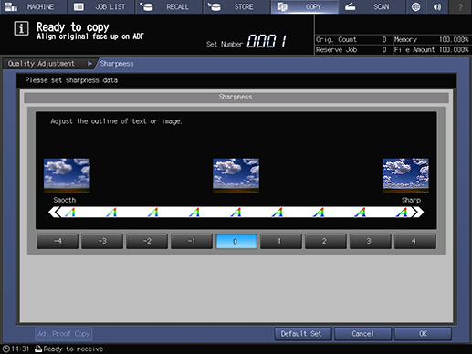 Touch panel - [COPY] - [Quality Adj.] - [Sharpness]