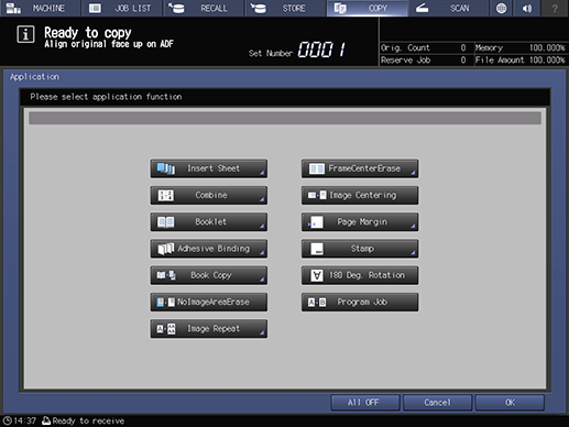 Control panel - Utility/Counter - [User Setting] - [Initial Setting] - [Copy Initial Setting] - [Application]
