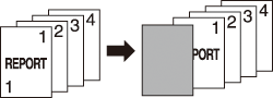 Back Cover + Print (Simplex or Duplex) | 1-sided copy ([2->1]/[1->1]): The last page of a 1-sided or 2-sided original is copied on a single side of the back cover sheet. For [1->2]: The 1st and 2nd pages of a 1-sided original are respectively copied on the front and back sides of the front cover sheet regardless of the cover print setting. If [Simplex] is selected for cover printing, the last page of a 1-sided original is copied on a single side of the back cover sheet. If [Duplex] is selected when the original has an even number of pages, the last 2 pages of the original are copied on both sides of the back cover sheet. For [2->2]: The last page of a 2-sided original is duplex-copied on the back cover sheet. A back cover cannot be simplex-copied. ![]() |