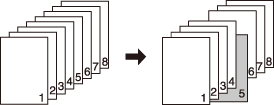 [2->1] | Blank paper is inserted after the 5th page (9th and 10th pages) of a 2-sided original was simplex-copied. Blank paper cannot be inserted after an odd-numbered copy page. ![]() |