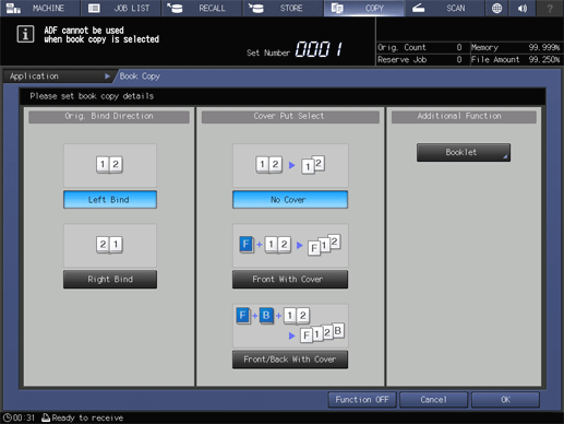 Touch panel - [COPY] - [Application] - [Book Copy]