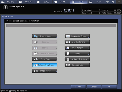 [All OFF] | Turns the function off while maintaining the set information. |