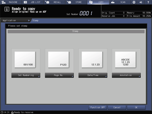 Touch panel - [COPY] - [Application] - [Stamp]