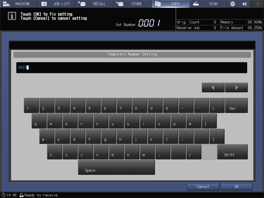 When the serial number is changed, [Temp.No.Set] is changed to [Temp.No.CLR].