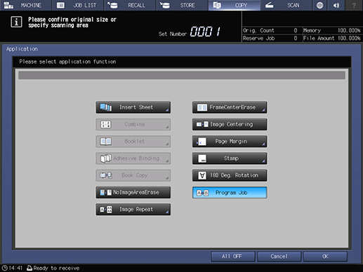 Merge multiple copy jobs scanned in different settings, and print them as a single job.