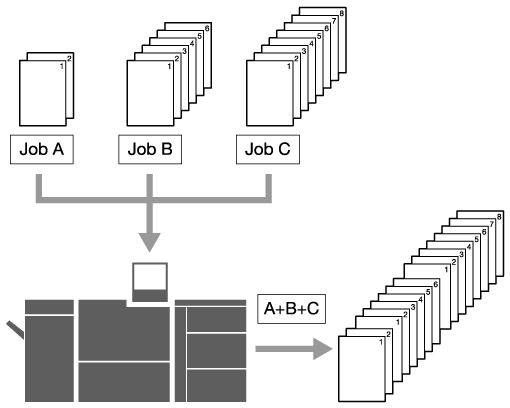 A paper tray can be set for each job, so it also possible to merge jobs of different paper sizes and paper types.