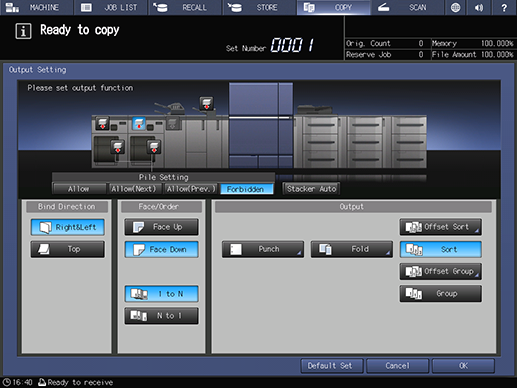 Control panel - Utility/Counter - [User Setting] - [Initial Setting] - [Copy Initial Setting] - [Output Setting]