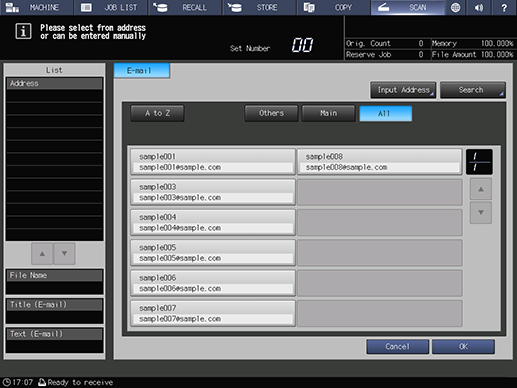 Screen access | Touch panel - [SCAN] - [E-mail] - [Option Setting] - [From Address Setting] | ||