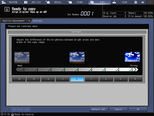 Touch panel - [COPY] - [Quality Adj.] - [Contrast]