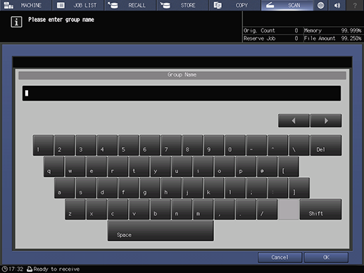 Control panel - Utility/Counter - [Administrator Setting] - [Scan Address Register] - [Address Edit] - [Group] - [Add] | |||