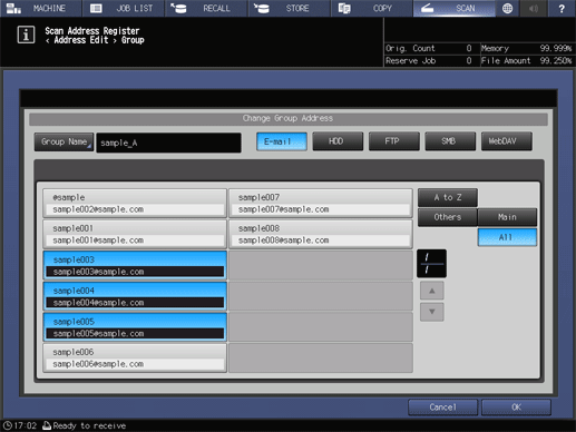 An address can be additionally registered or canceled. Up to 50 addresses can be registered in 1 group.