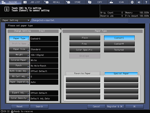 Touch panel - [MACHINE] - [Paper Setting] - [New Setting]