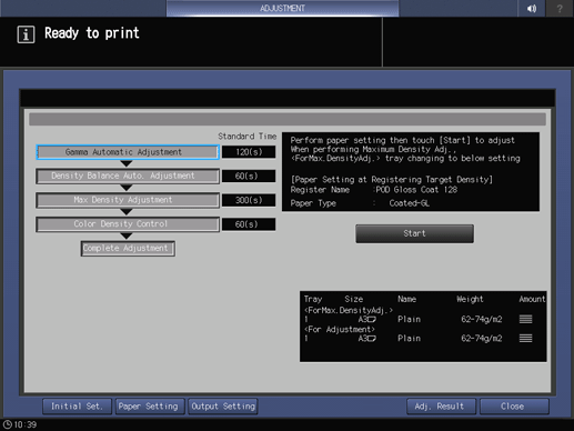 Touch panel - [MACHINE] - [Adjustment] - [Quality Adjustment] - [Package Color Auto Adj.]