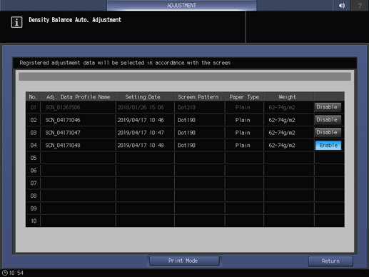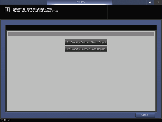 Touch panel - [MACHINE] - [Adjustment] - [Quality Adjustment] - [Package Color Manual Adj.] - [Density Balance Auto. Adjustment]