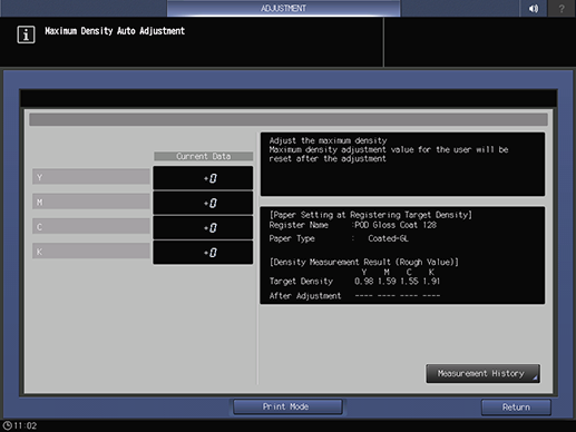 Touch panel - [MACHINE] - [Adjustment] - [Quality Adjustment] - [Max. Density Auto Adj.]