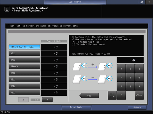 Adjust the punch hole position of FoldingUnit FD-503. Perform this function when the punch holes are very misaligned.