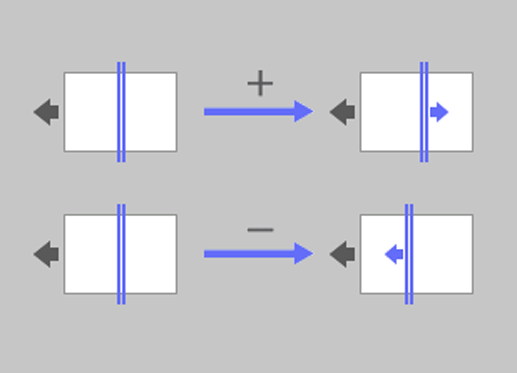(-) To move the crease position to the lead edge, (+) To move the crease position to the rear edge