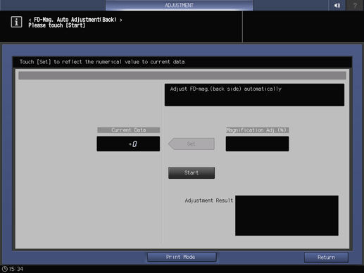 [Magnification Adj.(%)] | Displays the adjustment value calculated as a result of the automatic adjustment. | ||