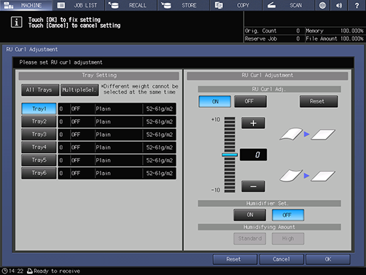 Touch panel - [MACHINE] - [RU Curl Adjustment]