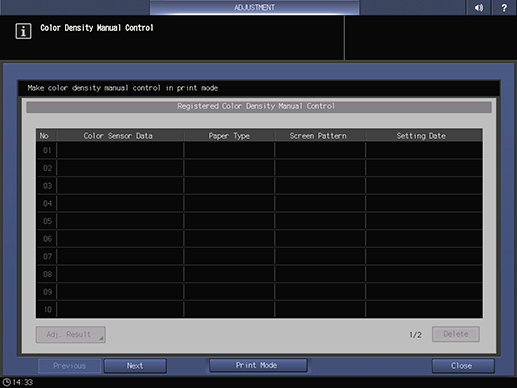 Touch panel - [MACHINE] - [Color Dens. Manual]