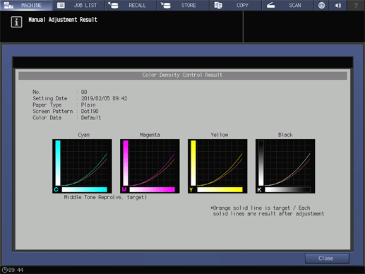 Touch panel - [MACHINE] - [Color Dens. Result]
