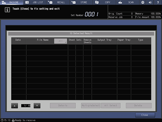 Touch panel - [MACHINE] - [IQ Detected Result]