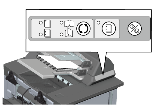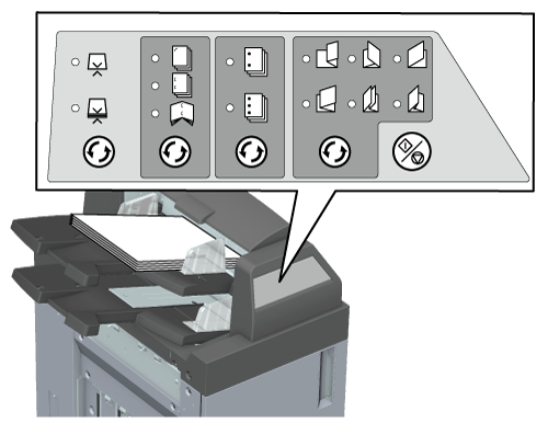 Control panel of Post inserter: has keys and LED lamps arranged to manually set post-processing. Each key is assigned to a function. Pressing keys allows the user to configure post-processing settings of the Post inserter. The LED lamps indicate the setting status.