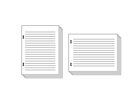 Copies are stapled parallel to the paper at 2 positions on the left side. This function creates a product with a form similar to a booklet, so it useful for stapling documents with a large number of pages.