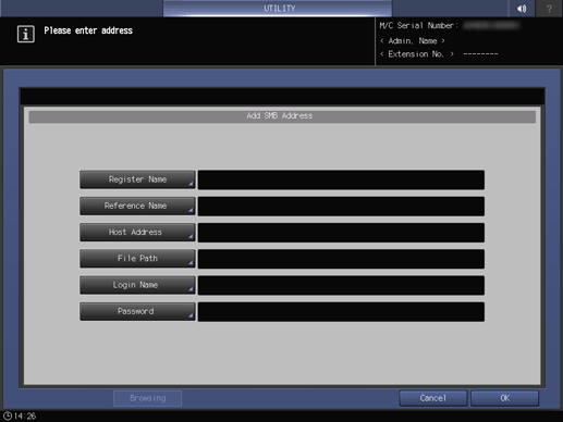 Control panel - Utility/Counter - [Scan Address Register] - [Address Edit] - [SMB] - [Add]