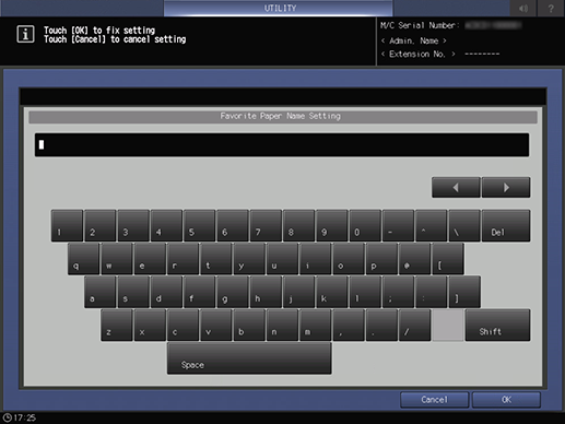 The [Favorite Paper Name Setting] screen is displayed.