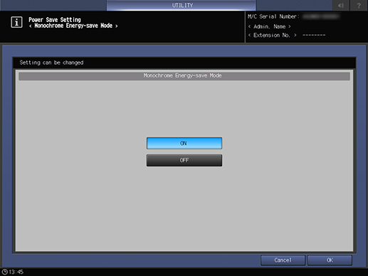 Control panel - Utility/Counter - [User Setting] - [System Setting] - [Power Save Setting] - [Mono Energy-save Mode]