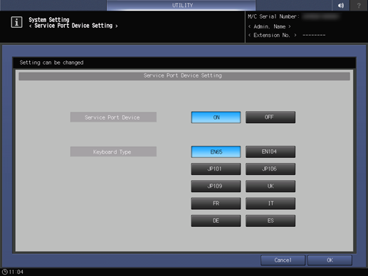 Control panel - Utility/Counter - [User Setting] - [System Setting] - [Service Port Device Setting]