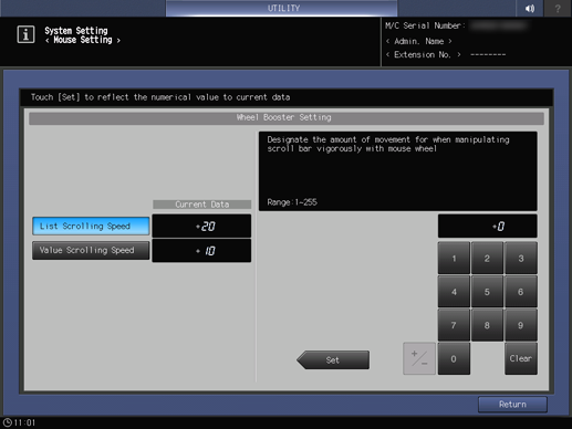 Screen access | Control panel - Utility/Counter - [User Setting] - [System Setting] - [Mouse Setting] | |||