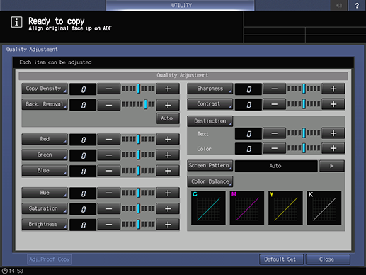 Control panel - Utility/Counter - [User Setting] - [Initial Setting] - [Copy Initial Setting] - [Quality Adj.]