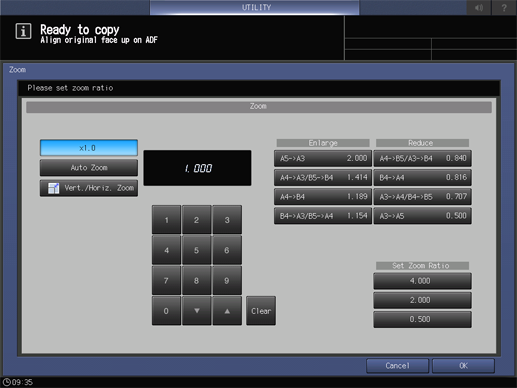 Control panel - Utility/Counter - [User Setting] - [Initial Setting] - [Copy Initial Setting] - [Zoom]