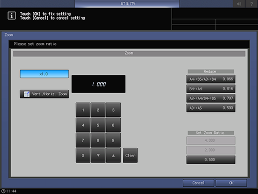 Control panel - Utility/Counter - [User Setting] - [Initial Setting] - [Scan Initial Setting] - [Zoom]