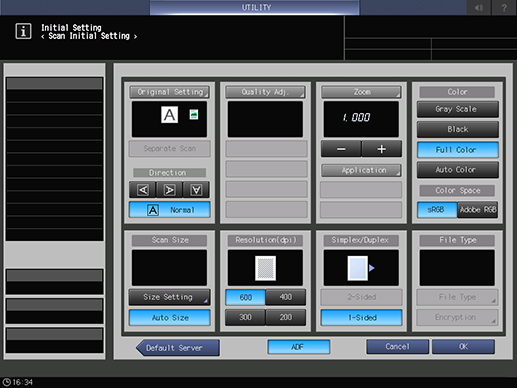 Control panel - Utility/Counter - [User Setting] - [Initial Setting] - [Scan Initial Setting]